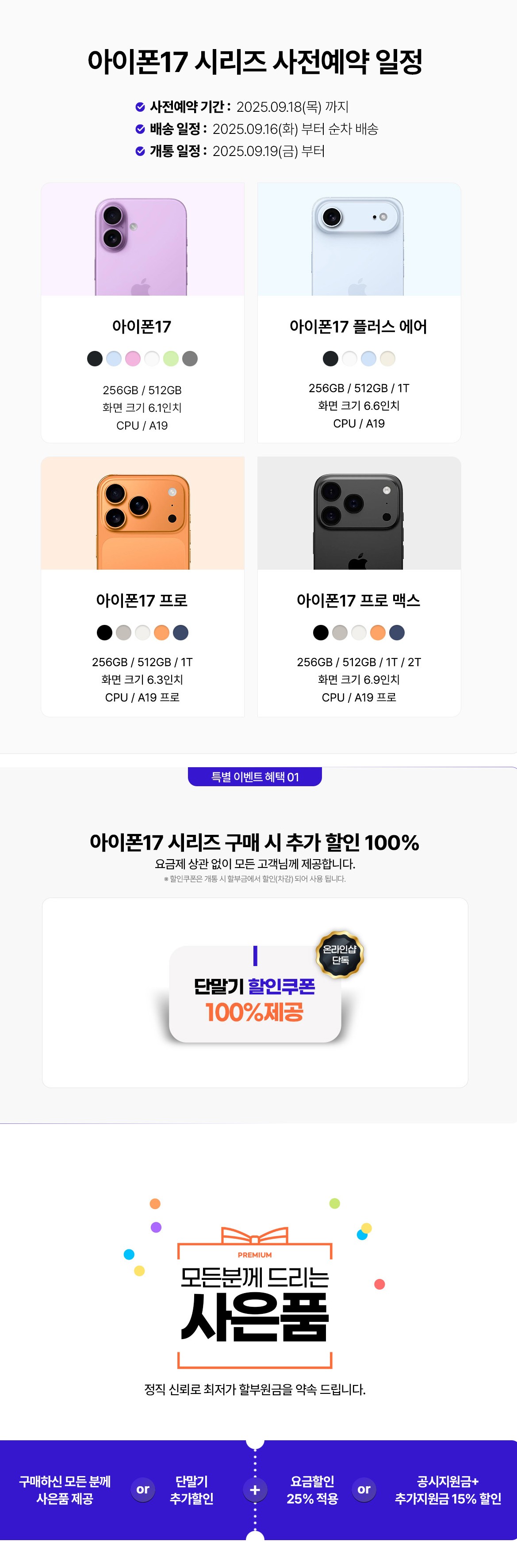 - 통신사별 아이폰17 사전예약 혜택