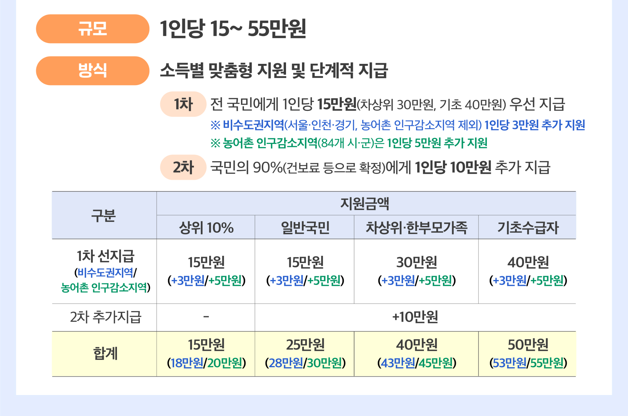 • 일반 국민: 25만원 (1차 15만원 + 2차 10만원)